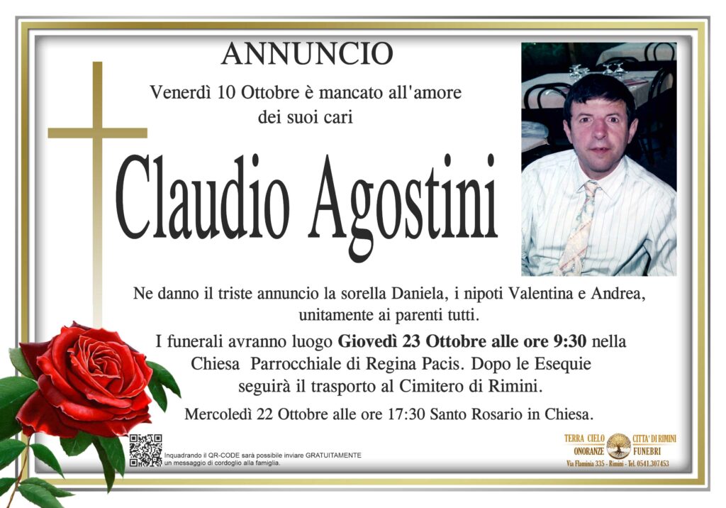 I funerali avranno luogo Giovedì 23 Ottobre alle ore 9:30 nella