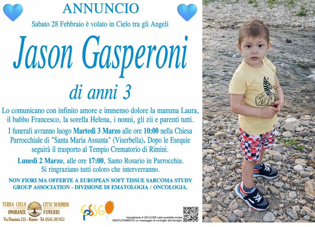 Lo comunicano con infinito amore e immenso dolore la mamma Laura, il babbo Francesco,