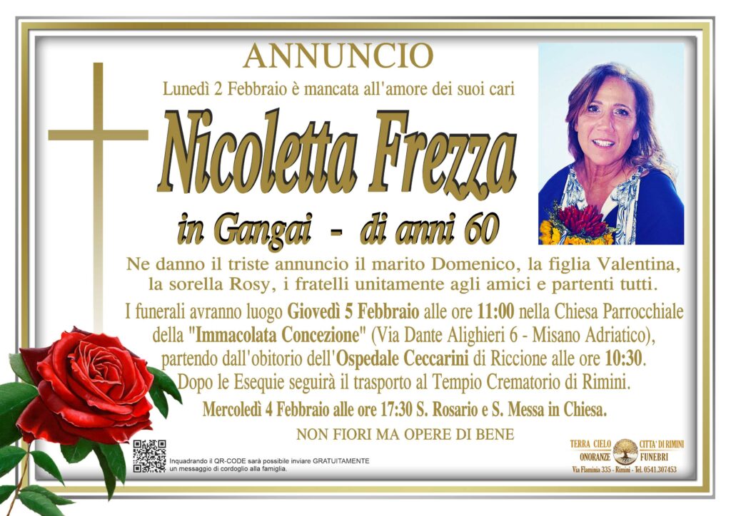 Dopo le Esequie seguirà il trasporto al Tempio Crematorio di Rimini.