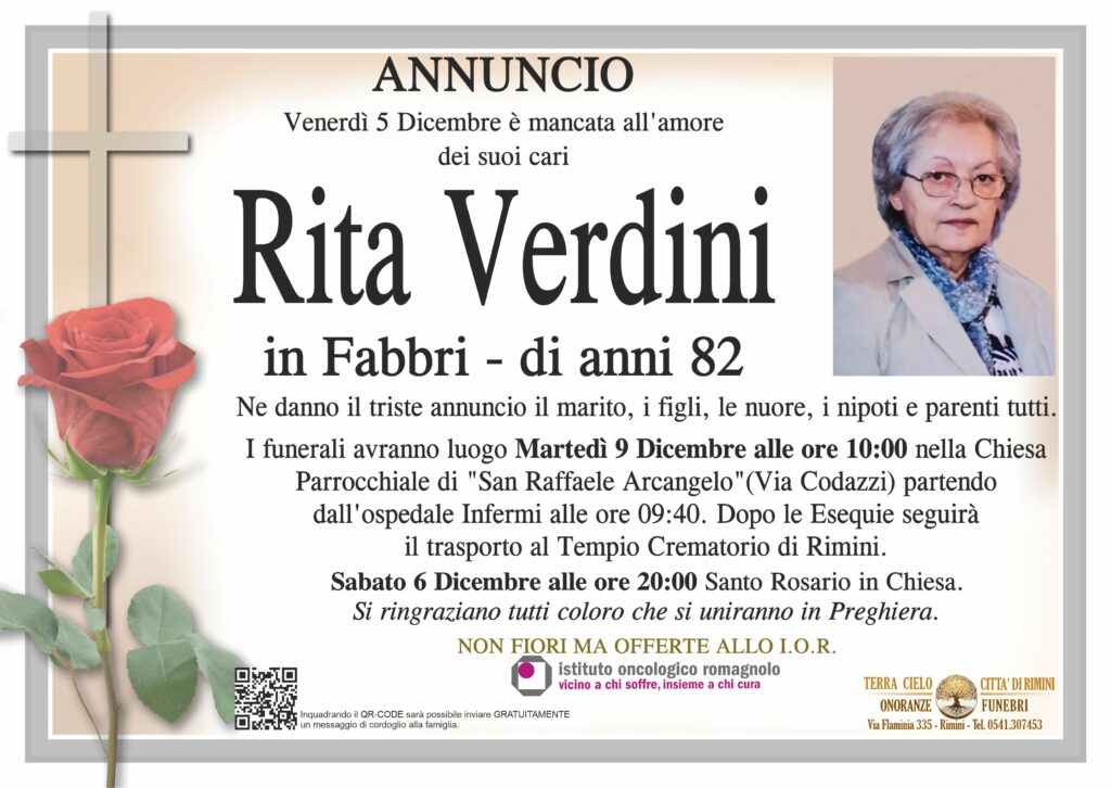 dall’ospedale Infermi alle ore 09:40. Dopo le Esequie seguirà