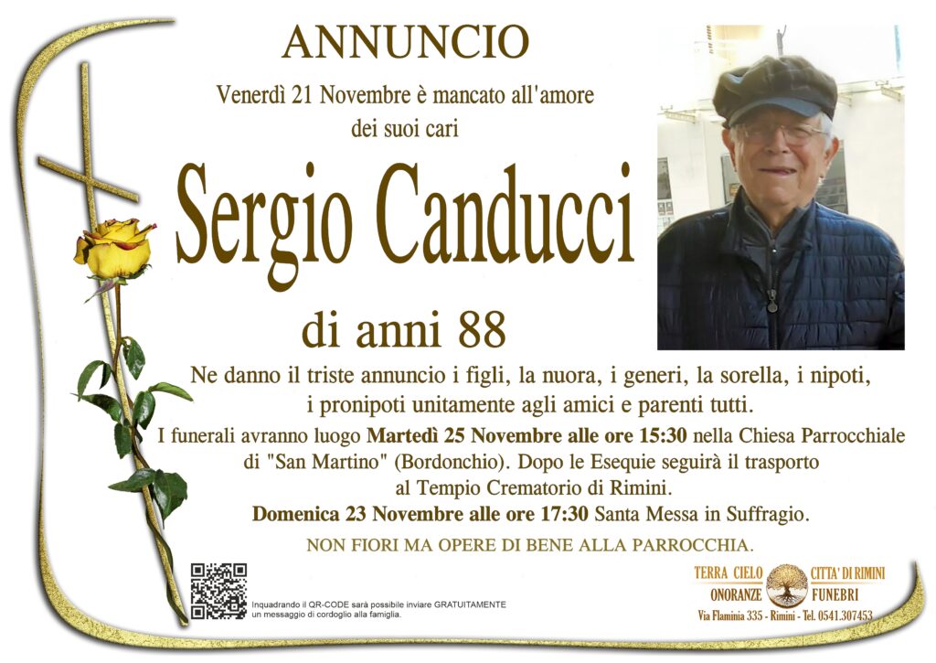 I funerali avranno luogo Martedì 25 Novembre alle ore 15:30 nella Chiesa Parrocchiale