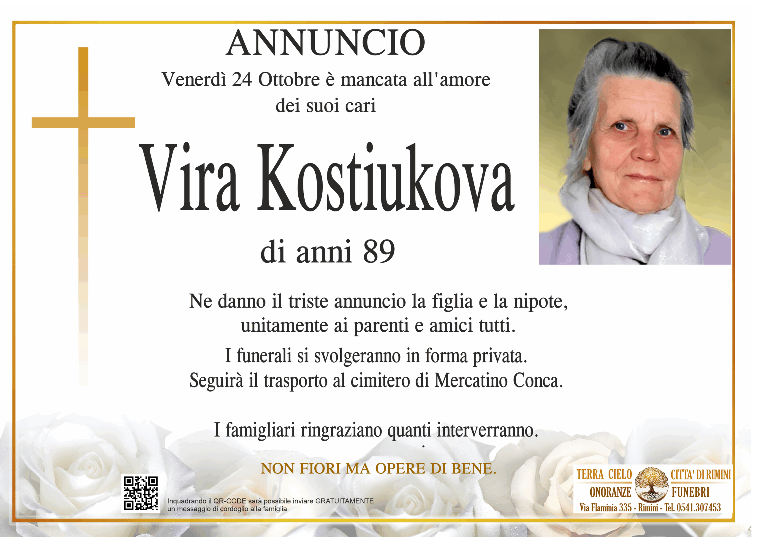 Ne danno il triste annuncio la figlia e la nipote, unitamente ai parenti e amici tutti.